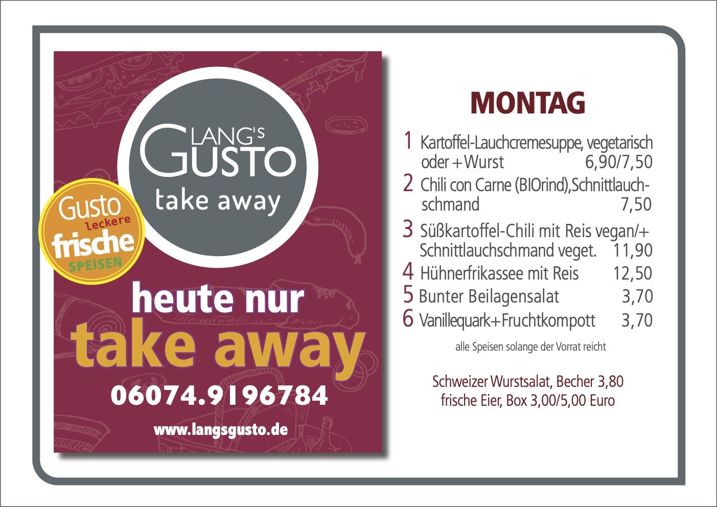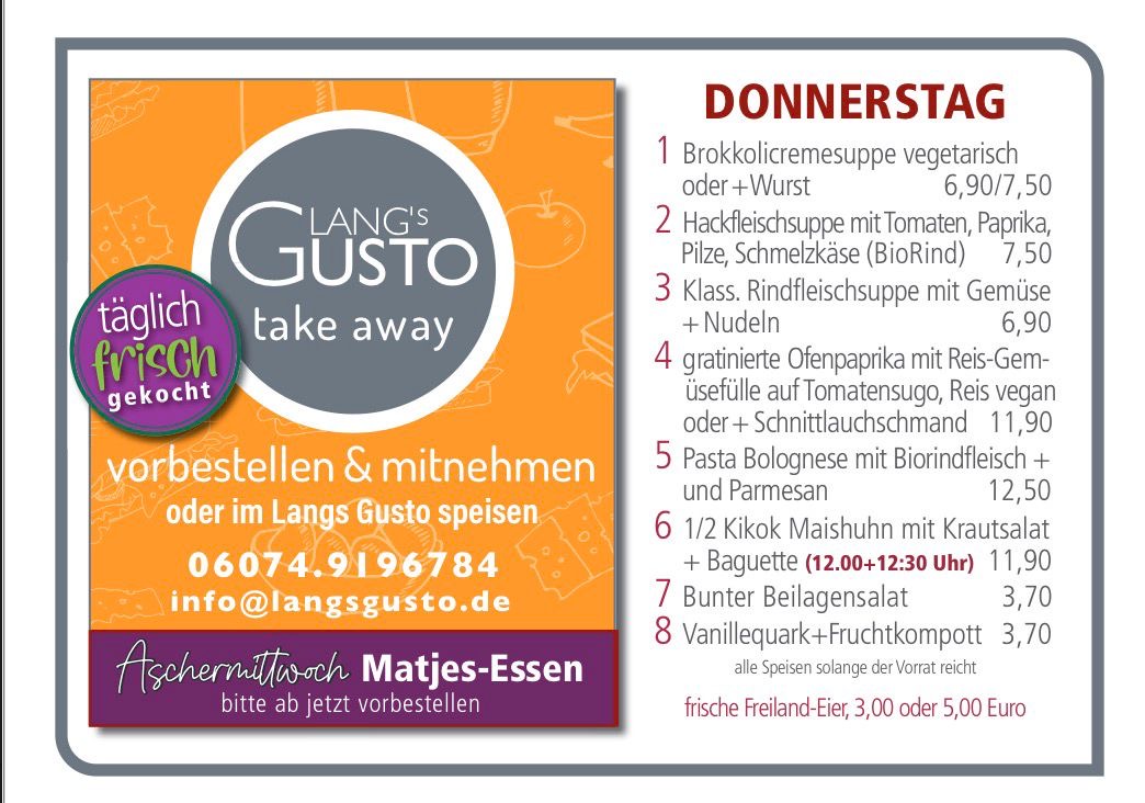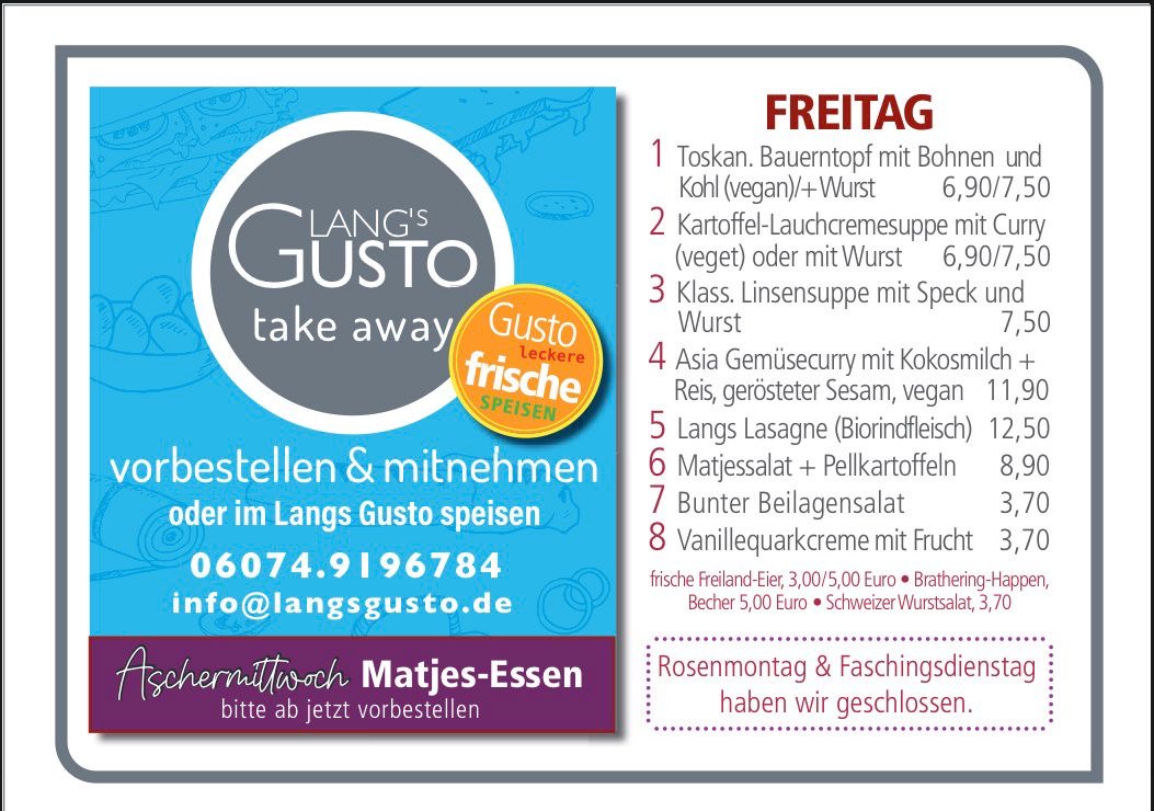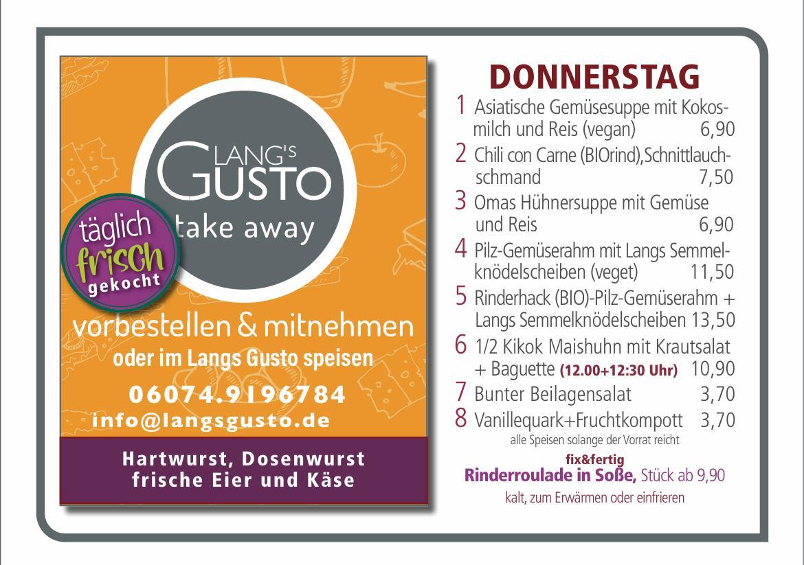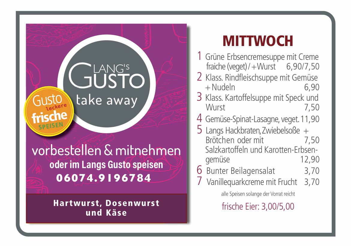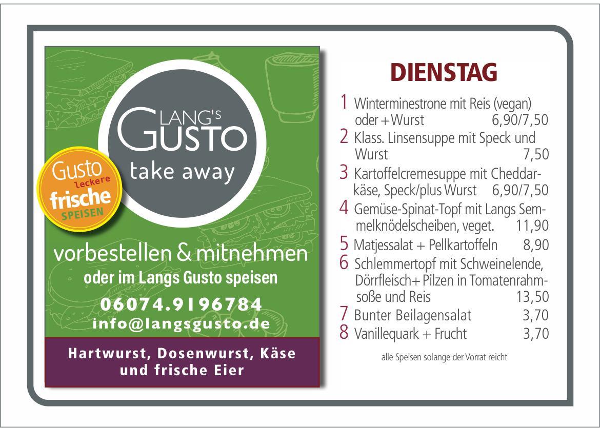 WILLKOMMEN BEI LANG´S GUSTO Mittagstisch & take away