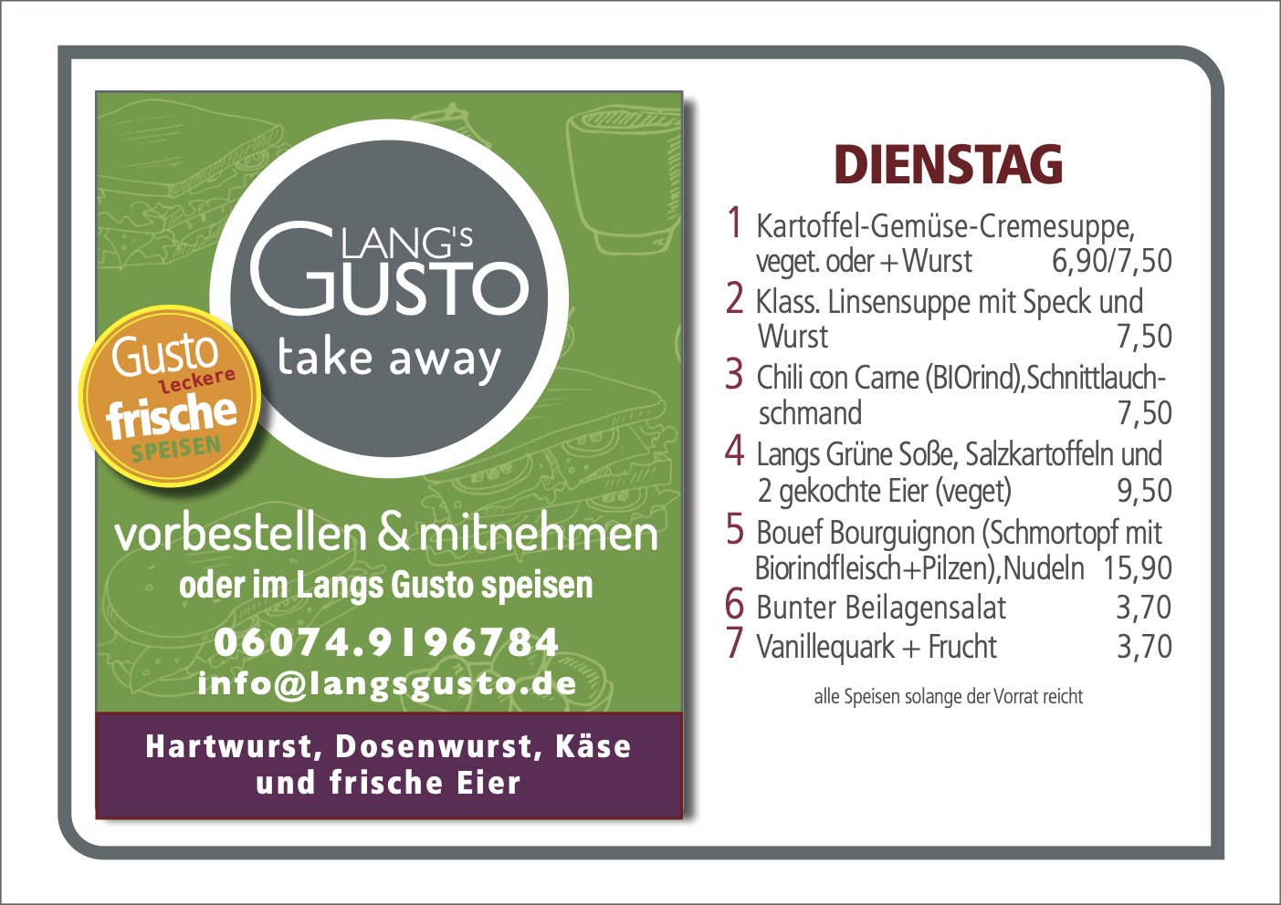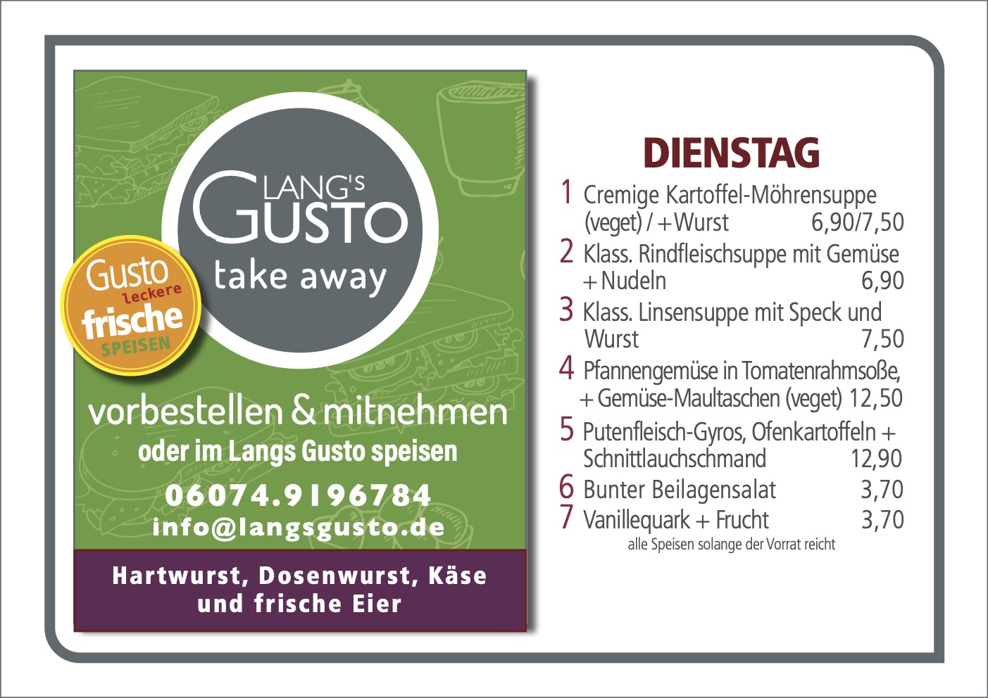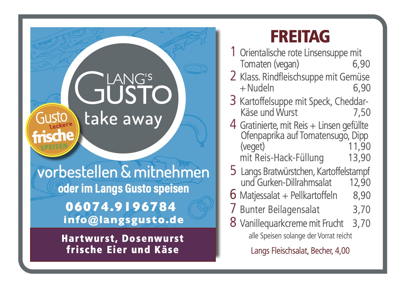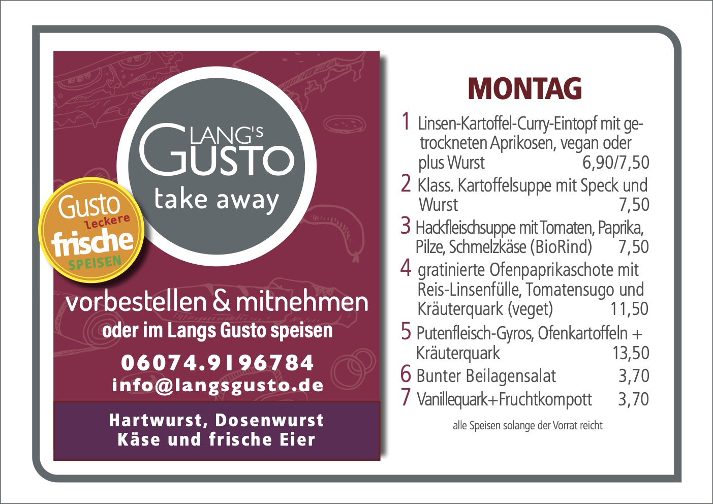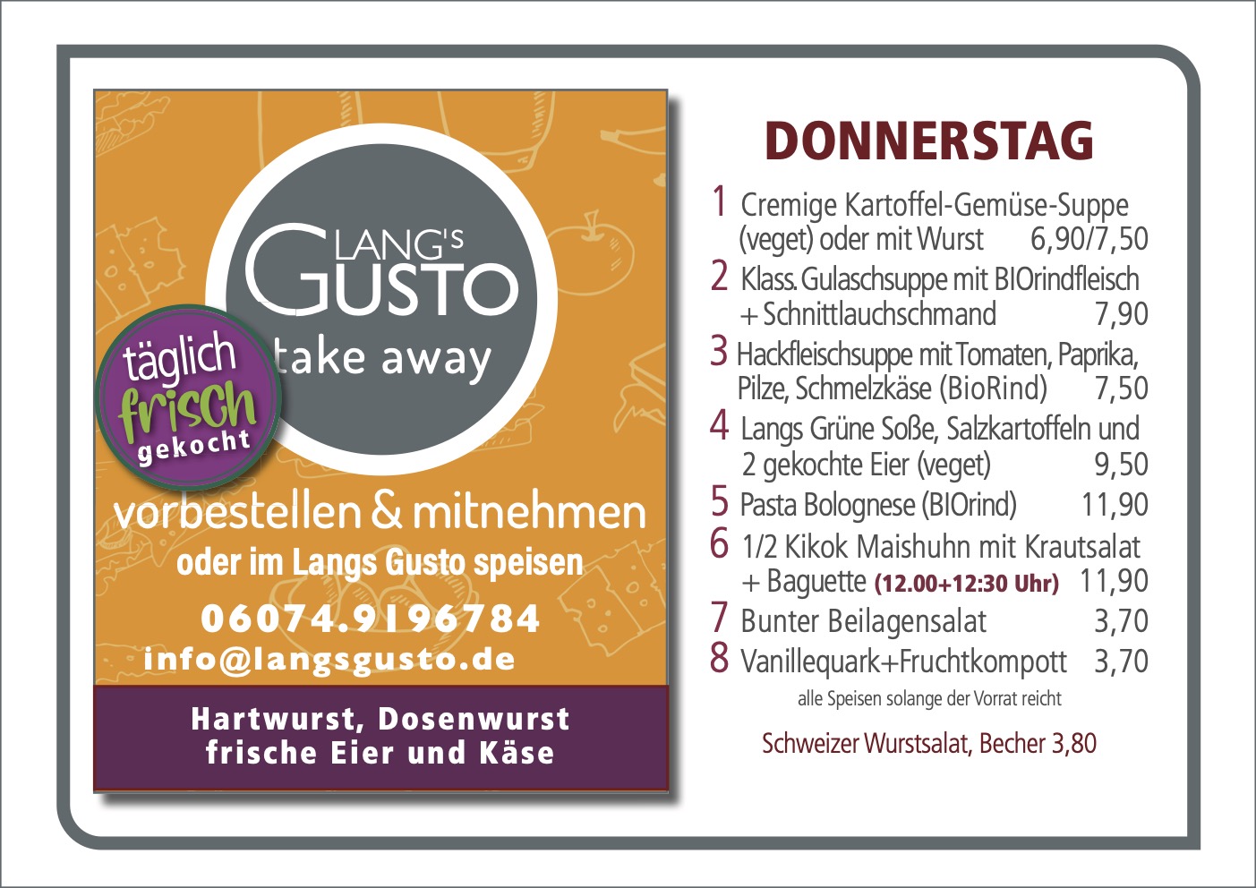 WILLKOMMEN BEI LANG´S GUSTO Mittagstisch & take away
