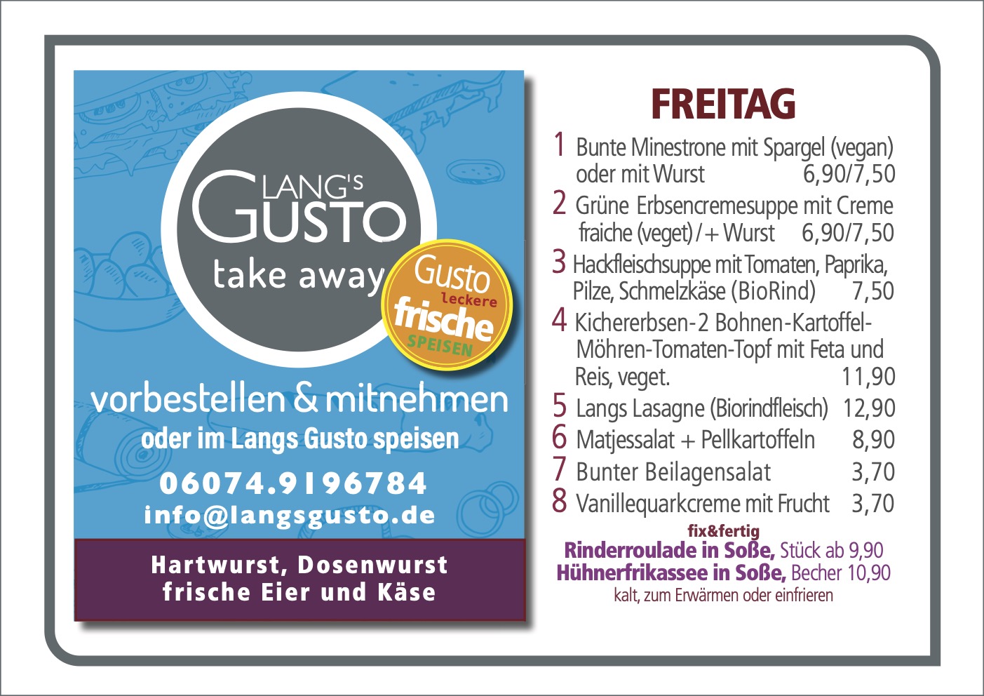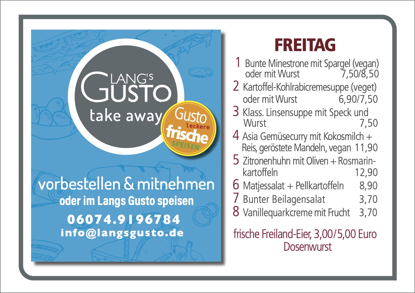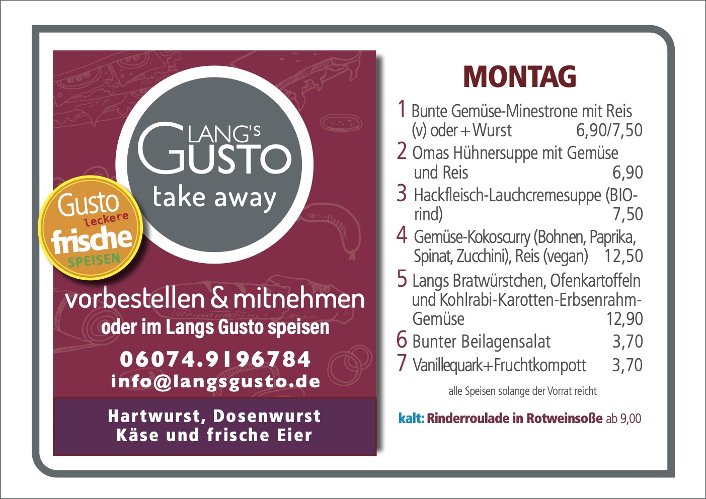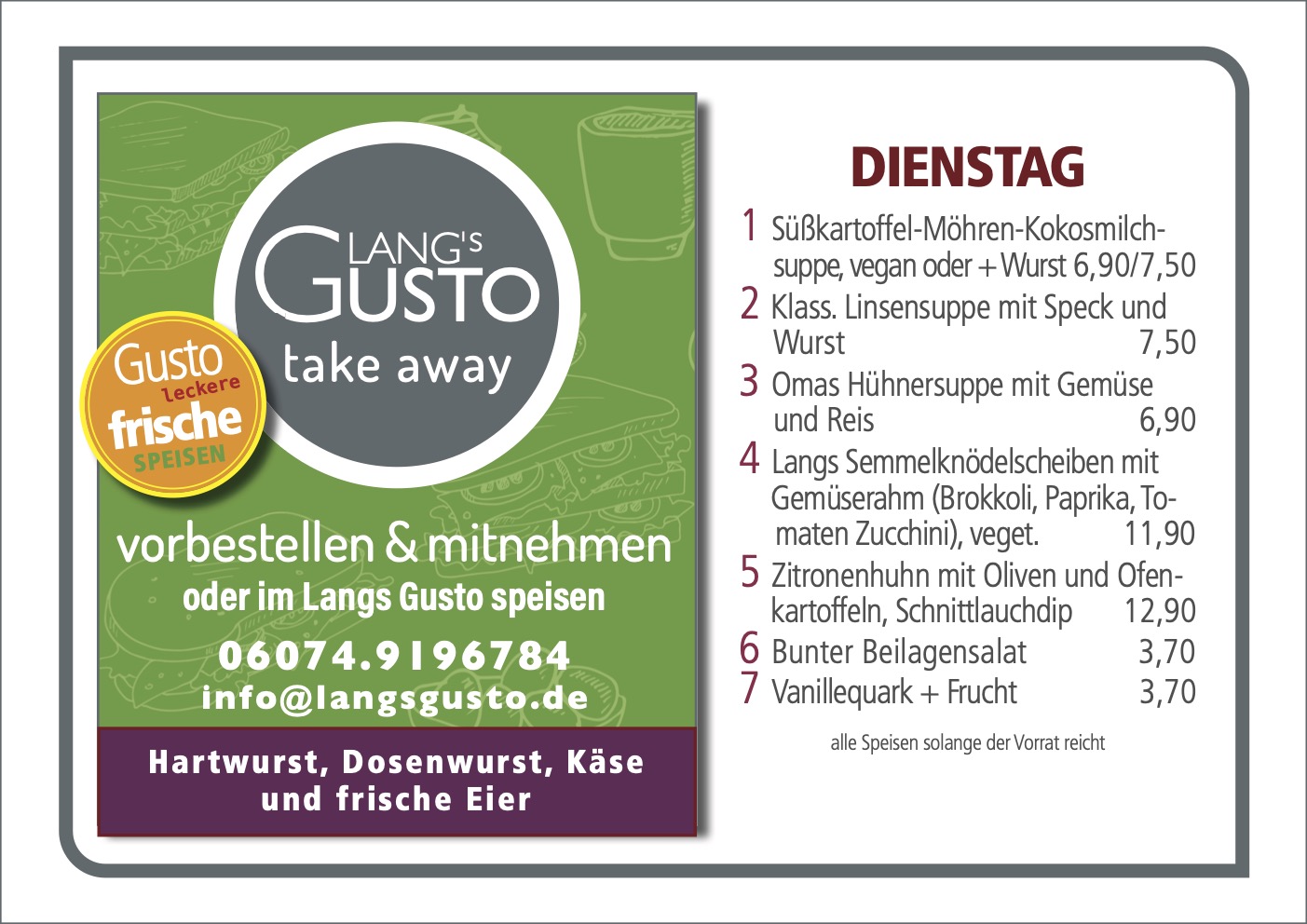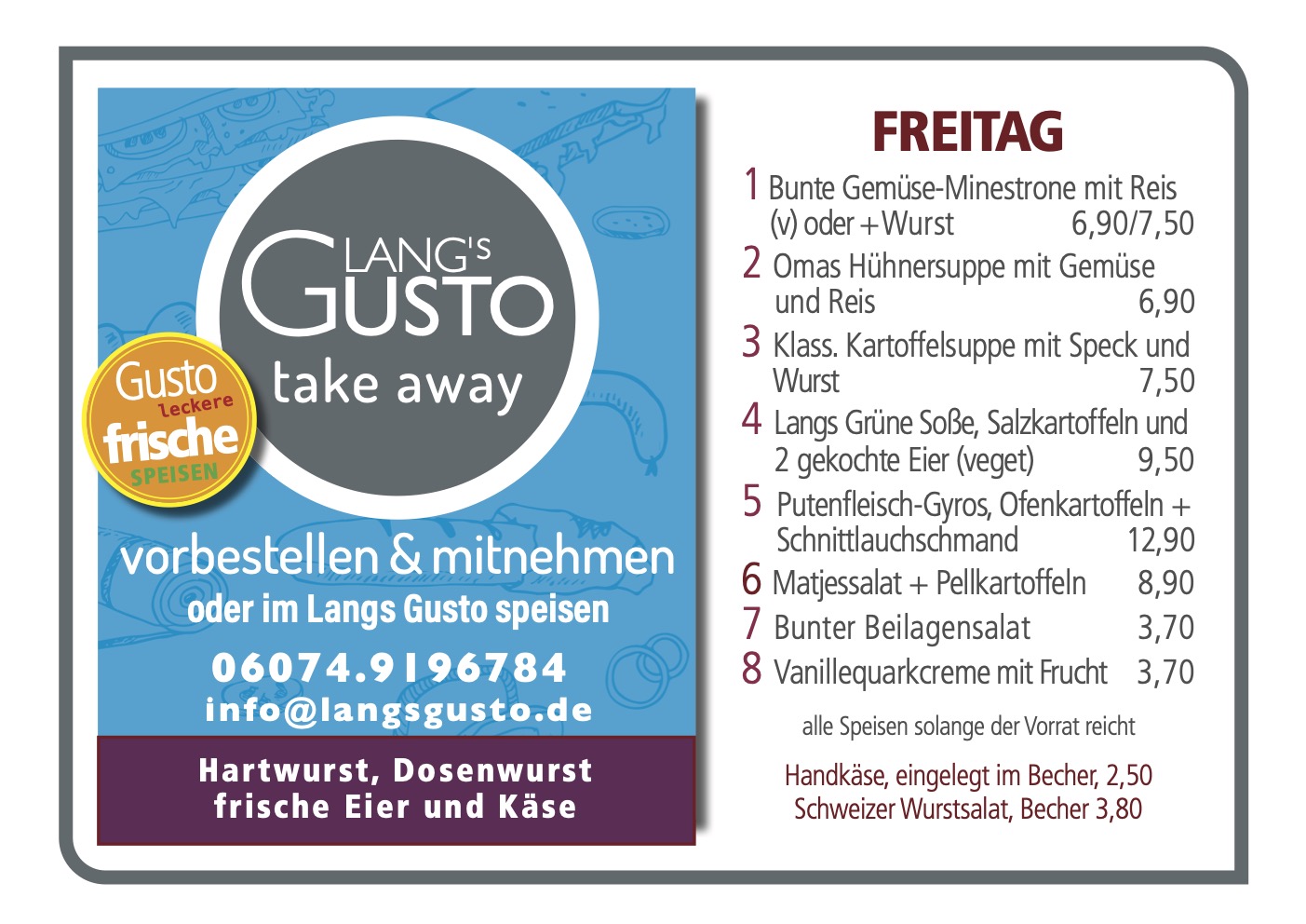 WILLKOMMEN BEI LANG´S GUSTO Mittagstisch & take away
