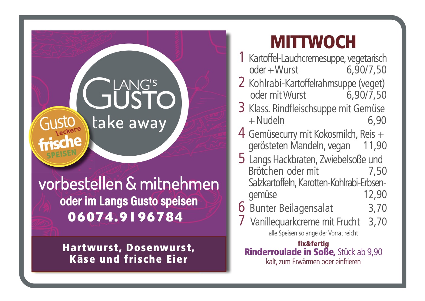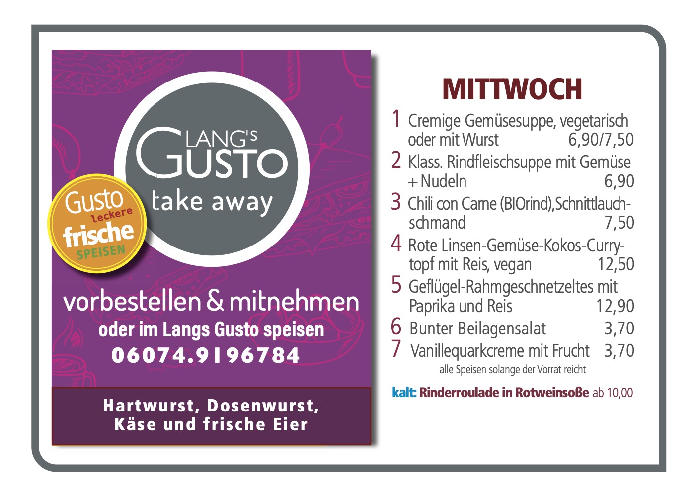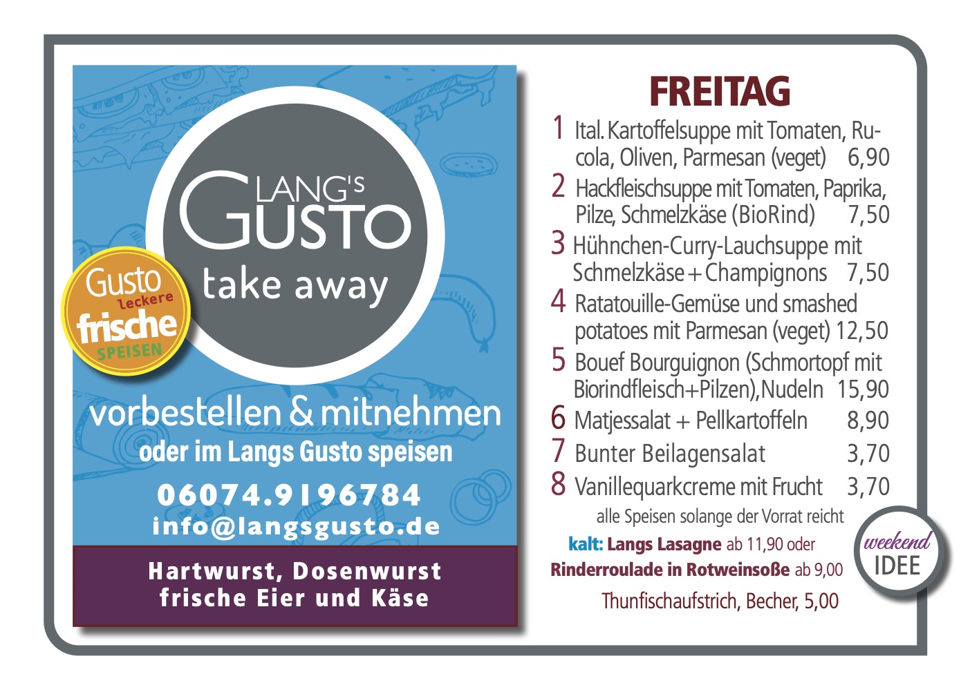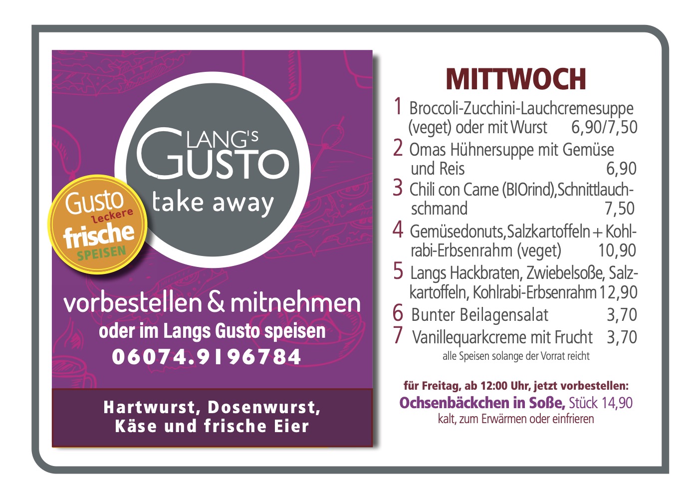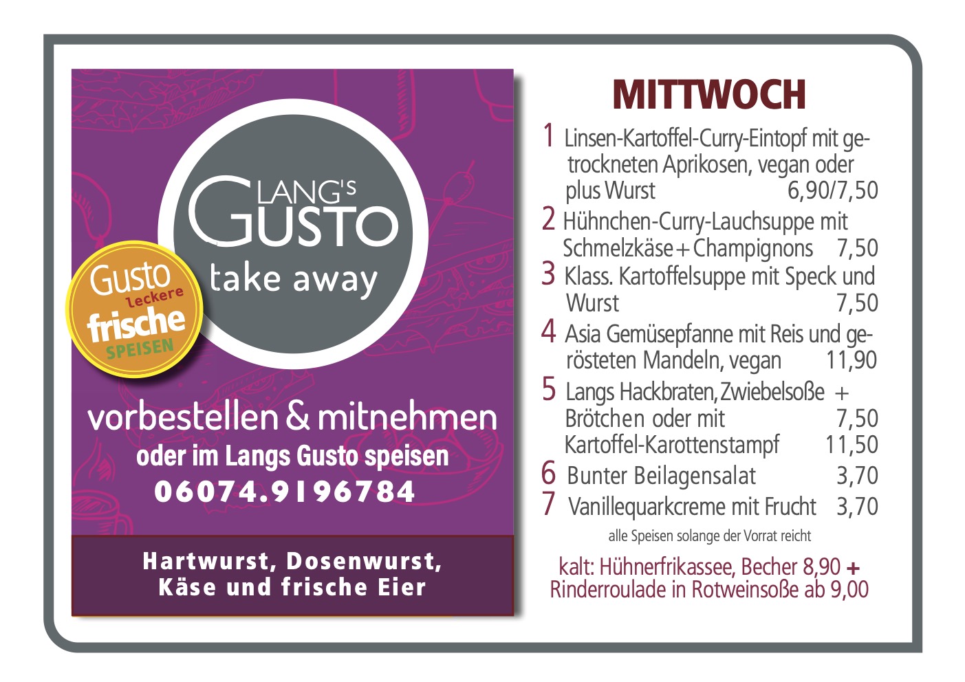 WILLKOMMEN BEI LANG´S GUSTO Mittagstisch & take away